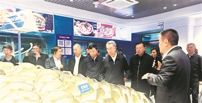 考察团一行在广东省湛江市考察水产品加工情况
